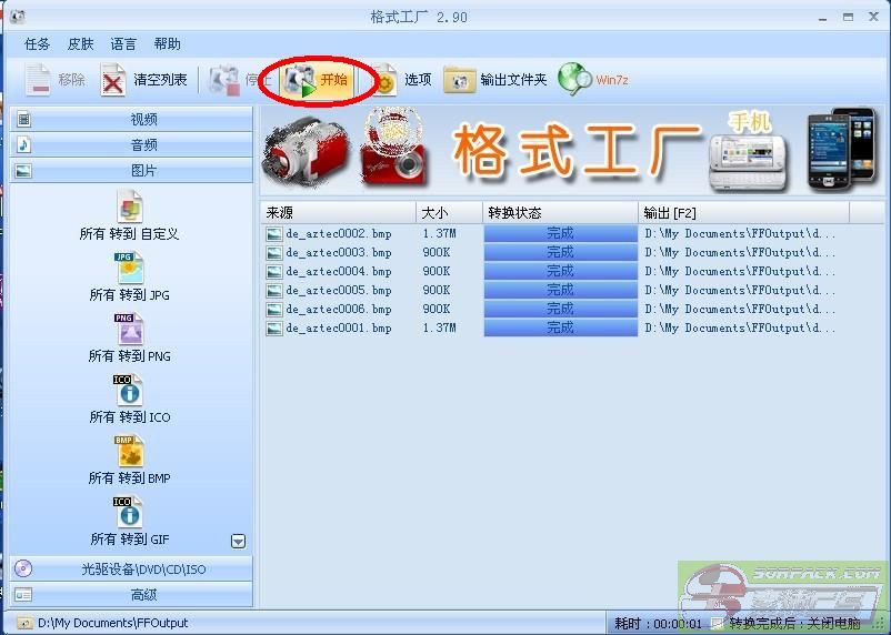 点击后, 然后自己找到想要转换格式的图。。。↓ 选好后,像下图这样,按确定。。。↓ 按了确定后,他会转回开始的画面,然后按开始。。↓ 即可完成。。。。