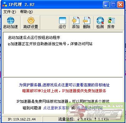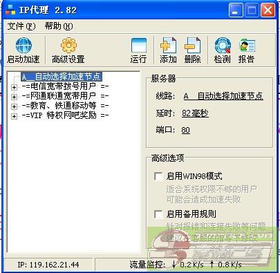 | -- 作者:b862539735 -- 发布时间:2012-07-23 13:46:00 -- 关于网通玩电信卡的解决办法!版主 ***!~~ ---------------------我推荐以下两种加速器-------------------- 队友们在一起守服攻服的时候,难免会受到服务线路 的不同导致ping 往往会很高!对此我向大家介绍2种加速器! ①:IP代理【免费版】 http://www.ipmana.com/proxy-6.html 下载地址 注意:这个加速器可以不用注册帐号的只需要 点击登录按钮就可以进入了!进入后 点击高级设置即可! 然后添加cs ,找出你cs的地址,就可以添加 比如我的cs在E:\\游戏\\Cs\\cs
