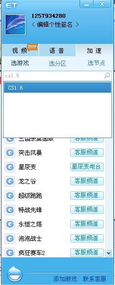 点击右上角的加速即可。 搜索cs1.6即可 然后进入http://sorpack.com/dispbbs.asp?boardID=38&ID=76281&page=1 查看你要进入那个F的 是网通还是电信,或者香港 什么的 比如我要进 香港服把! 我就要 用香港加速节点! 注意:这个需要直接打开cs即可,cs的快捷启动最好在桌面上! |