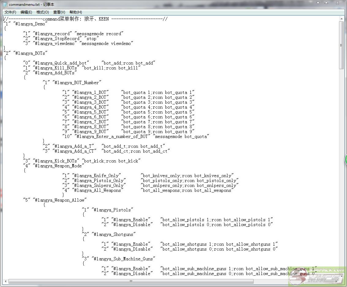 | -- 作者:MoTiaNLuN -- 发布时间:2015-06-11 17:14:00 -- commandmenu.txt为H键菜单内容,中文版的在cstrike_schinese内,可以自由编写(前提你得会) |