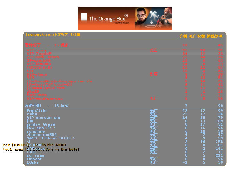 | -- 作者:ZombiE -- 发布时间:2008-09-28 0:53:00 -- 申請退出 Spk.SBS 原因: 沒技術, 槍法爛, 沒時間參與比賽 希望我離開後 SBS 會變的越來越強大, 也謝謝各位隊友帶給我的歡樂 謝謝各位! |