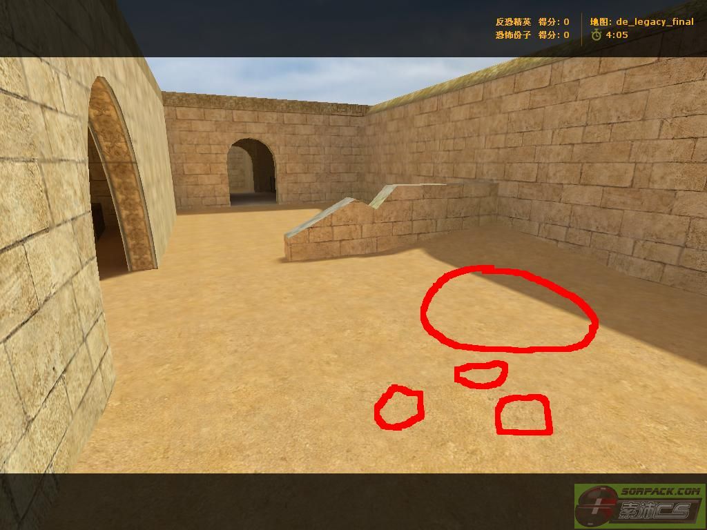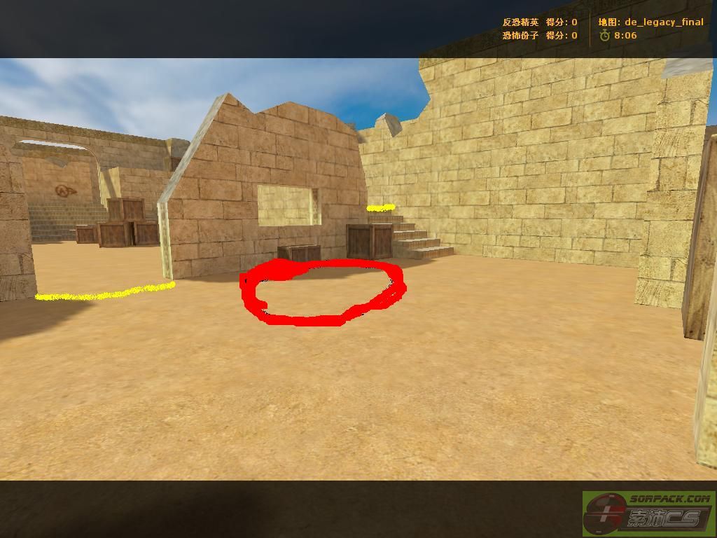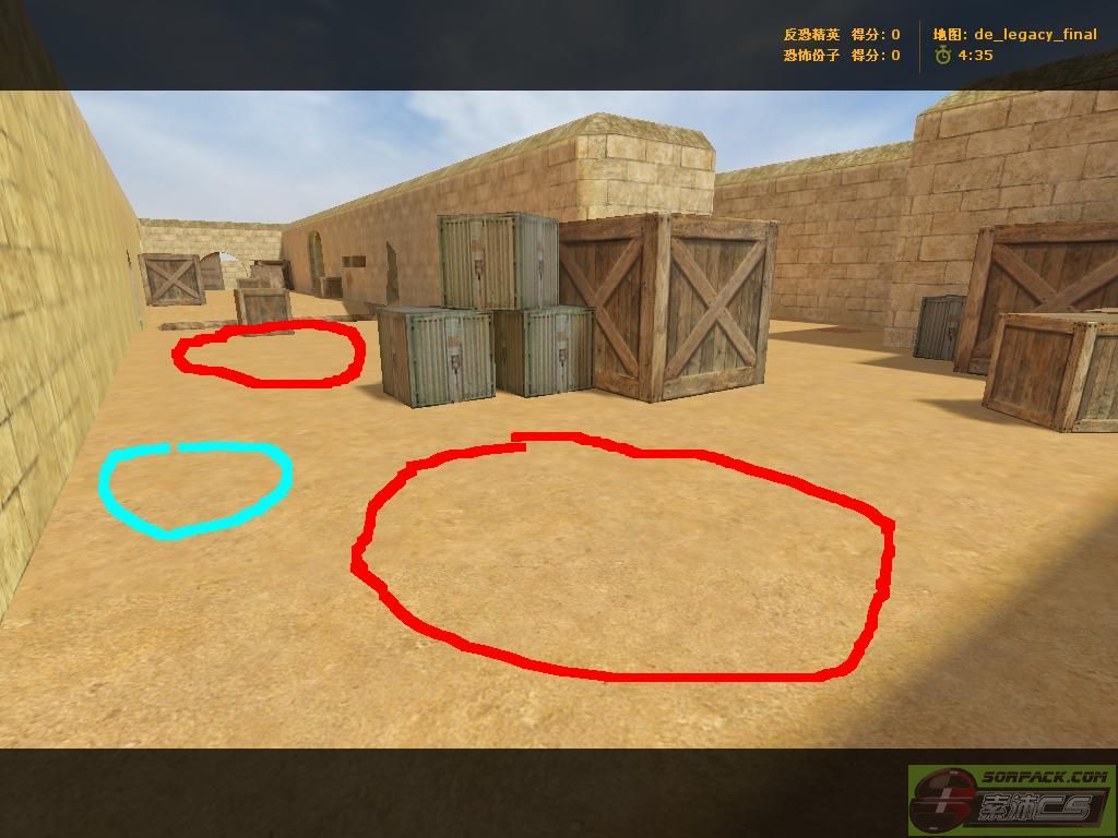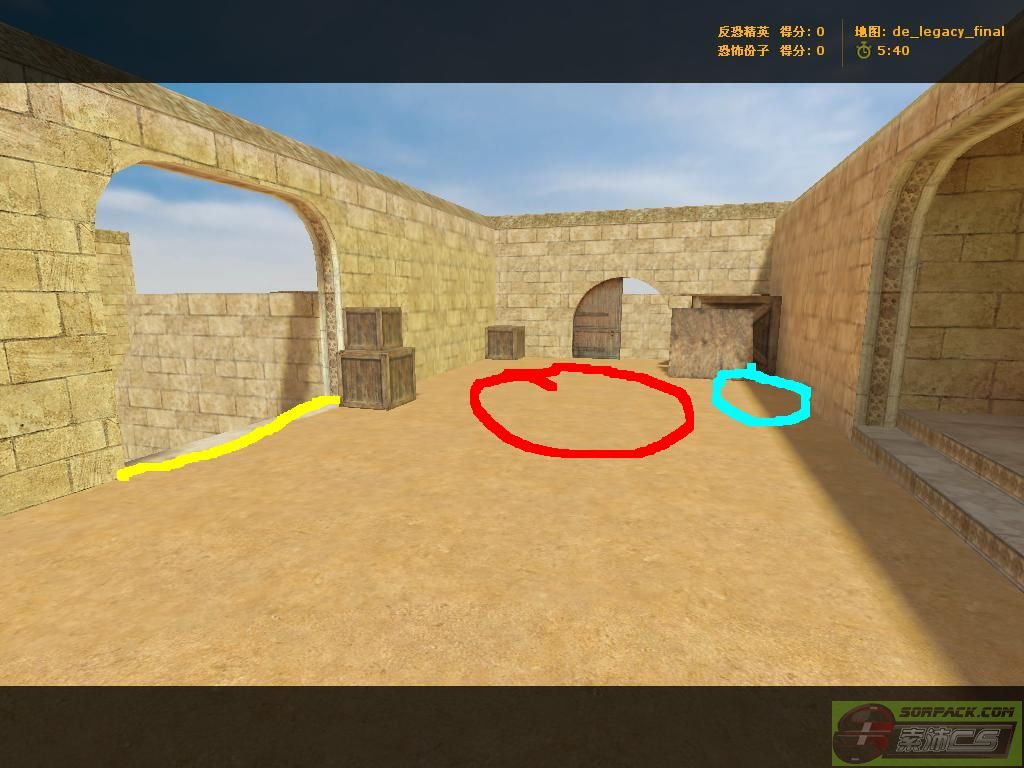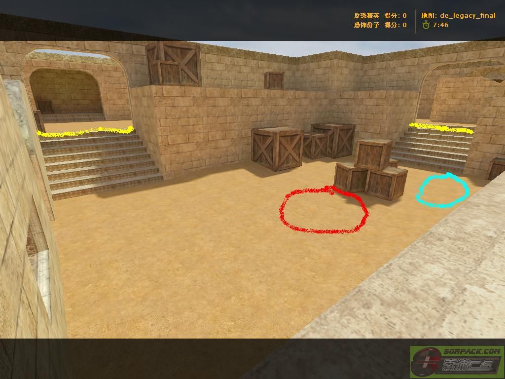 | -- 作者:1596468838 -- 发布时间:2014-08-27 8:10:00 -- [转载]抗日地图 沙漠遗迹(毁坏) 在抗日板块看到某些玩家抱怨老大只加越狱和丧尸的新图,所以我上了网找个地图当抗日,当然还是我们的沙漠纹理,不过这纹理可是CS零点行动的沙漠纹理,纹理给人十分良好的感觉,也算是开学前的礼物,加不加由老大决定。 下面开始介绍,看图前先注意:红色圈是NPC的出生点,蓝色圈是汉奸出生点,黑色线的是在某关自动消失的,黄色线是阻挡墙壁(纸墙) 首先是可爱的T家 然后是日本暴民据点(左右俩边的纸墙打完后消失)