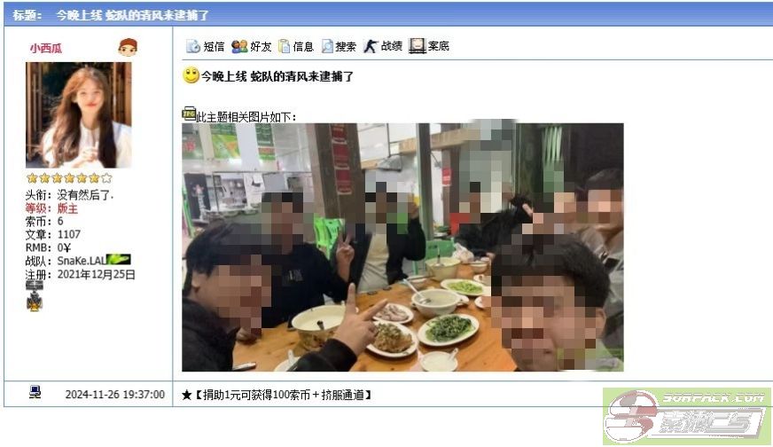 那个烧烤师傅别洗了,谁还不知道你蛇蛇都啥人吗?去年蛇族大队在罗浩杰的带领下,集体出号出钱,集体维护并给诈骗犯清风出头, 蛇被老大降成游击队的事件, 你们思想简直太畸形了,这种连老乡都骗的人,你们都能跟他玩,可谓是物以类聚,蛇鼠一窝。