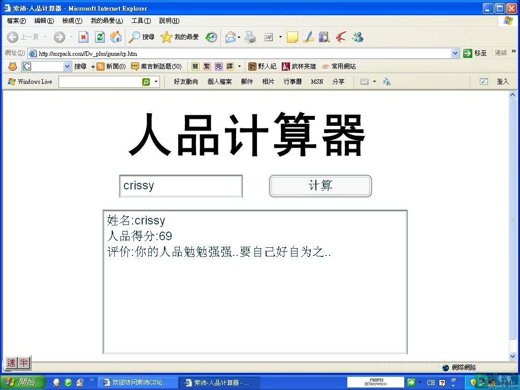 | -- 作者:imqq55 -- 发布时间:2010-01-25 17:32:00 -- 你去看http://sorpack.com/dispbbs.asp?boardid=50&ID=161372&replyID=161372 那位仁兄无语 我RP80, 这个小游戏N早就看到过了 |