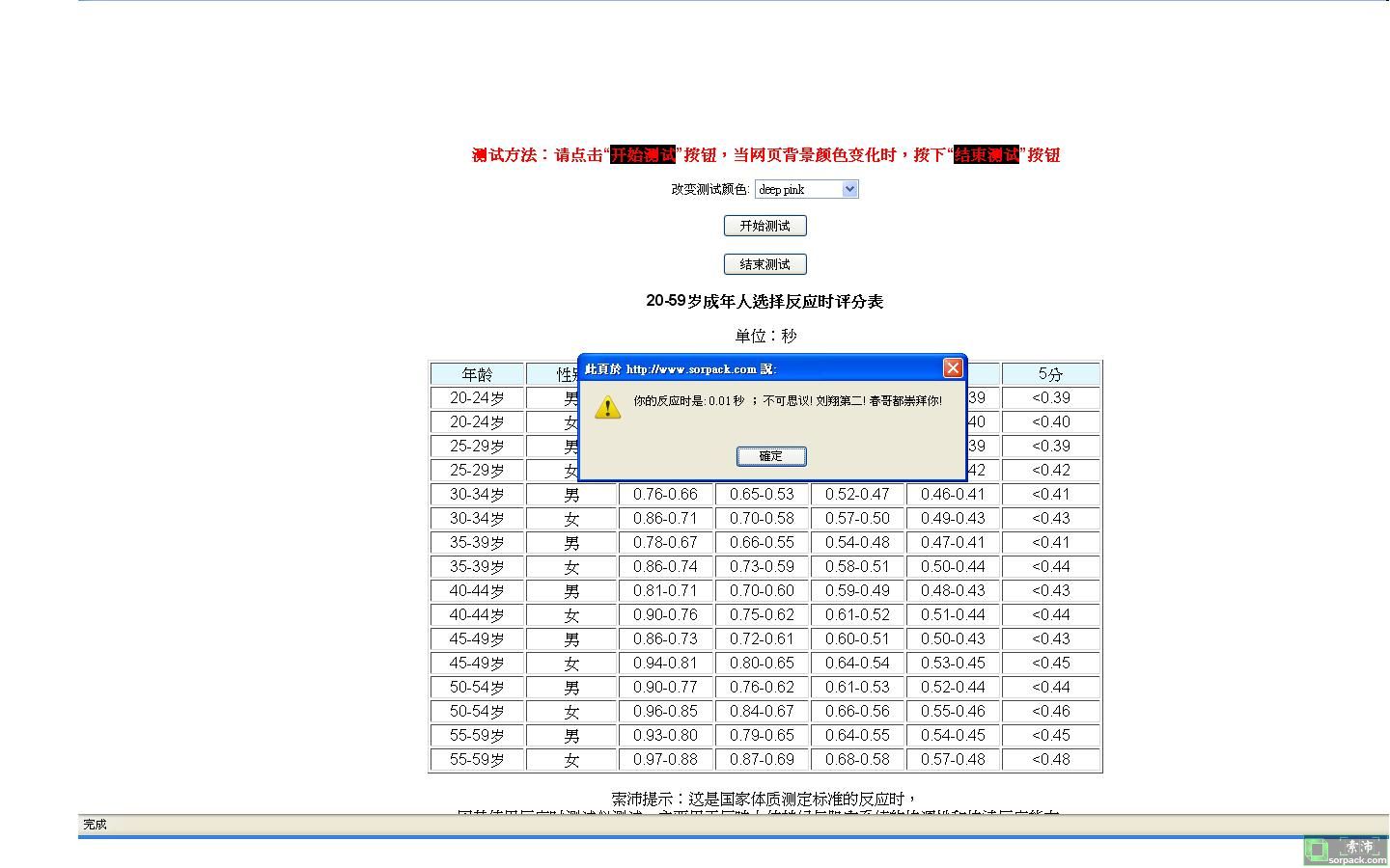 我在另一个网试过0秒,就是等的不耐烦了就按结束,结果刚好那时候变色,嘿嘿,我就0s了