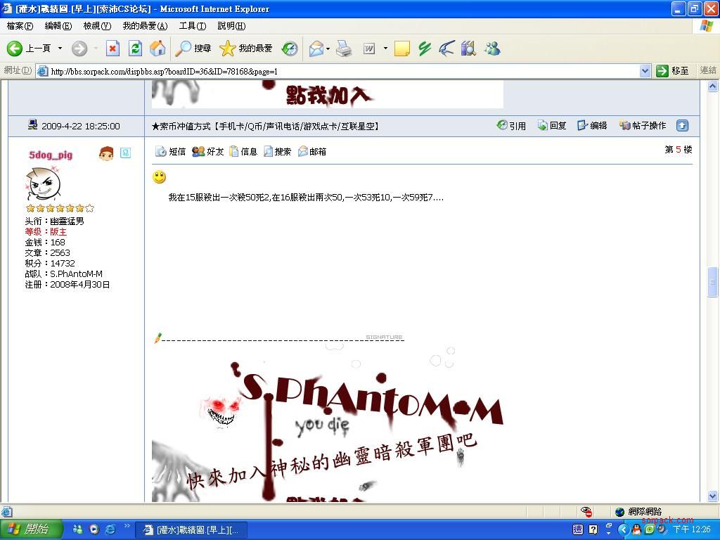 以下是引用skyman在2009-4-26 12:26:00的发言:看5狗他經常說出他的戰績 覺得他太囂張了, 總以為自己很了不起,,一山還有一山高啊- - 其實他加了多少錢 沒人知道,,.! 他這囂張樣子真討厭..我超越他他在那邊喊呀媽    此主题相关图片如下:  我的最高纪录贴图区被XXX搞没了 停止法红包了