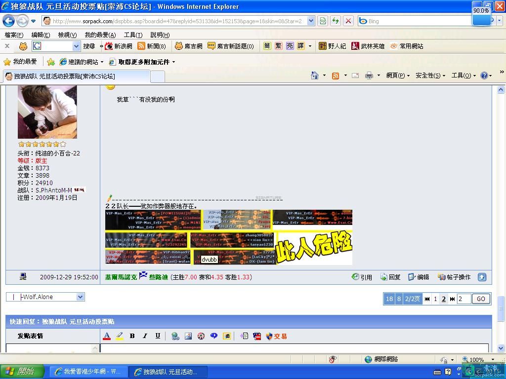 | -- 作者:Free_LisTerIne -- 发布时间:2009-12-30 12:50:00 -- 以下是引用Fober在2009-12-30 12:02:00的发言: 我怎么进不去网站... ![]() 你看網止是什么 |