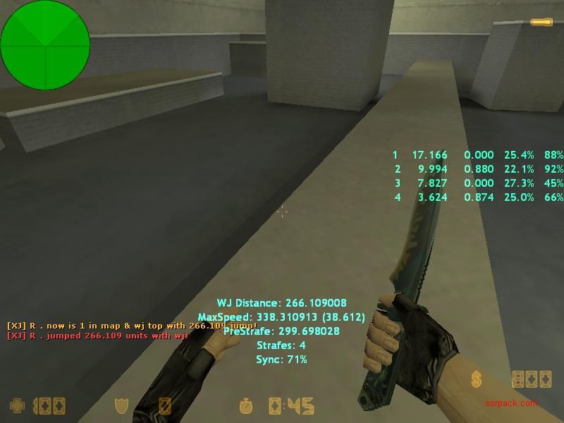 | -- 作者:Lelouch_CC -- 发布时间:2009-09-08 17:22:00 -- 過300地速 落地就會減速 bj.wj.連跳也是這樣 所以才有彈跳這東東。。 |