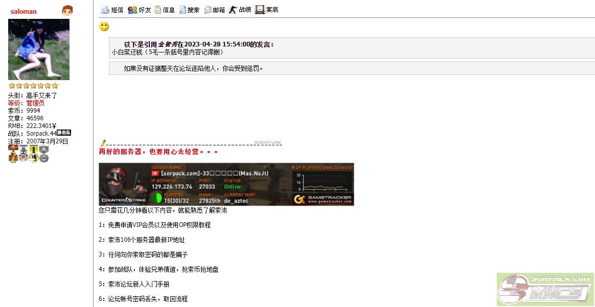 | 以文本方式查看主题 - 索沛CS1.6论坛 CS反作弊 CS1.6下载 amxx sma插件 cs对战平台 (http://101.42.38.52:27015:27015/index.asp) -- BlacK.PinK (http://101.42.38.52:27015:27015/list.asp?boardid=465) ---- 这算不算证据啊? (http://101.42.38.52:27015:27015/dispbbs.asp?boardid=465&id=2625705) |