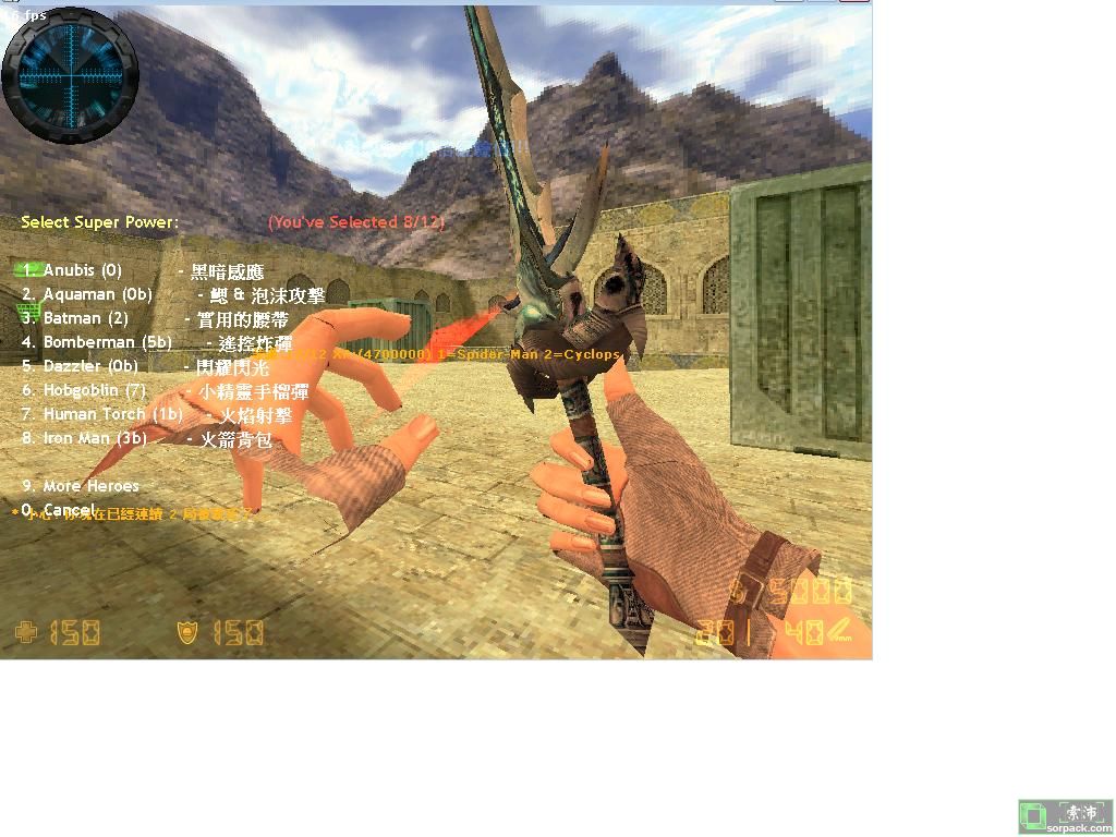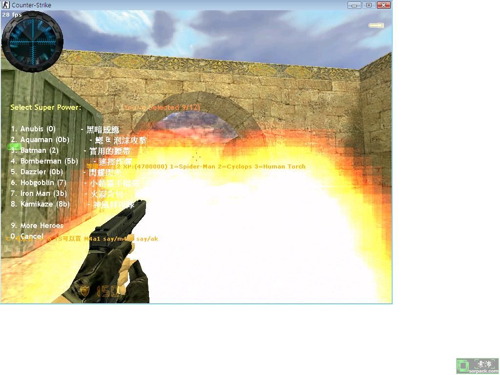| -- 作者:ertg -- 发布时间:2010-01-19 14:56:00 -- 本人開的伺服器 61.15.140.30:27016 此為超級英雄伺服器,有好多技能!!! 好似加速,雷射,偽裝等 附圖 蜘蛛絲 雷射 噴火 |