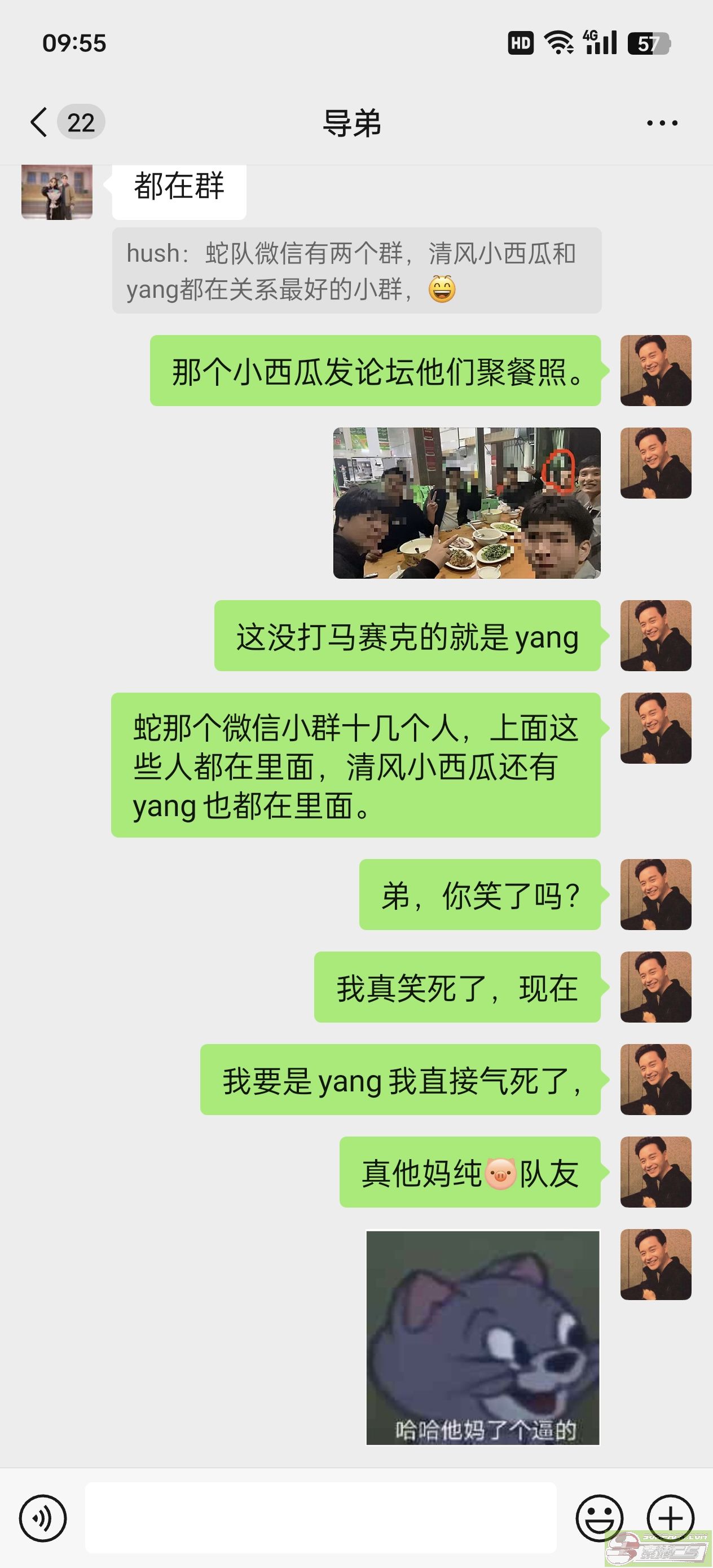 清风小西瓜确实没去聚餐,但是yang在里面,我搞不懂他们拿yang的照片,说这是我
