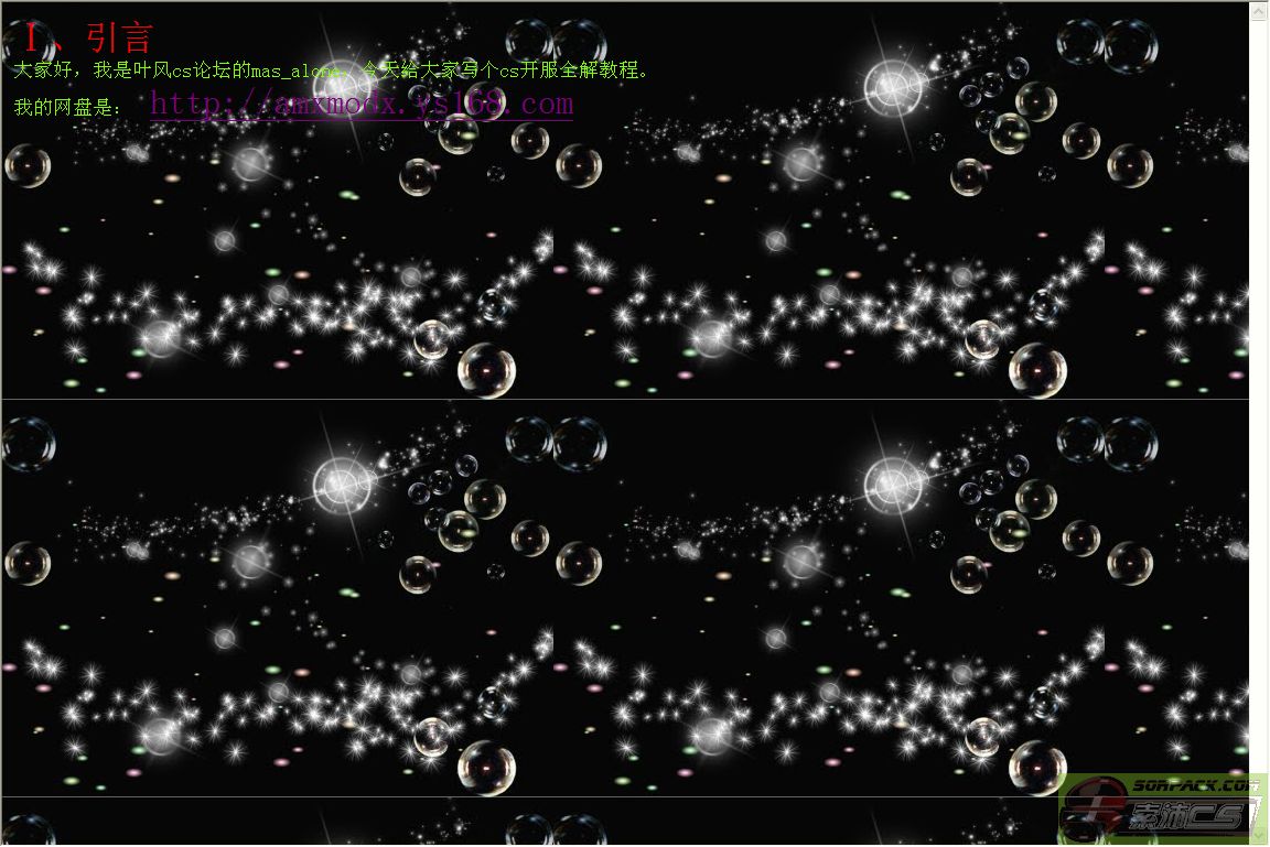 cs开服教程,就是用cs目录下的hlds.exe来开服,比如你在玩索赔的服务器把?看了教程你就会开启那种服务器了,不过要做到和索赔一样好玩,你就必须要有插件,不过索赔不会对外开放插件的,所以你要自己写插件
