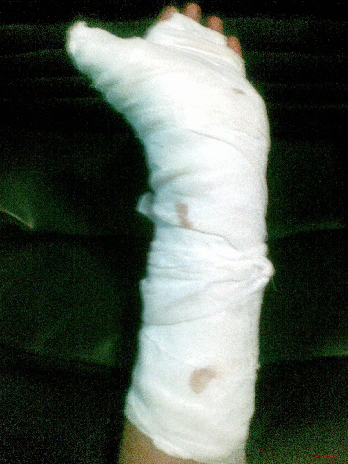 哇~!你的手好酷呀~!打了石膏用这手揍人不会痛的吧.图片点击可在新窗口打开查看