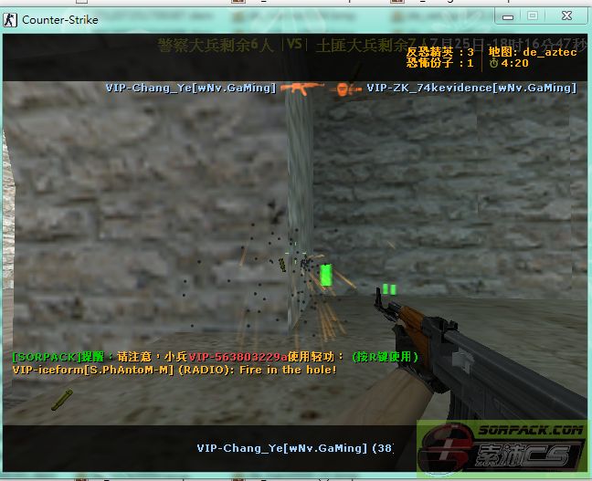 录制者:VIP-miku520 嫌疑人:VIP-Chang_Ye[wNv.GaMing] 时间:2012年07月25日 18:16:19 服务器:[sorpack.com]-18刺杀大兵服(wNv.GaMing) 地图:de_aztec