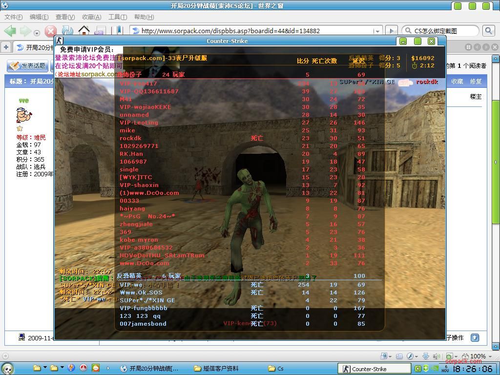 这是今天刚打的,开局大概有快40分钟吧,,没有取过钱,也没当过SW,一般自己喜欢的地图都能排在前五名之内,SW最高纪录抓了16个人,杀了两个人王;希望可以加入你们战队可以吗?