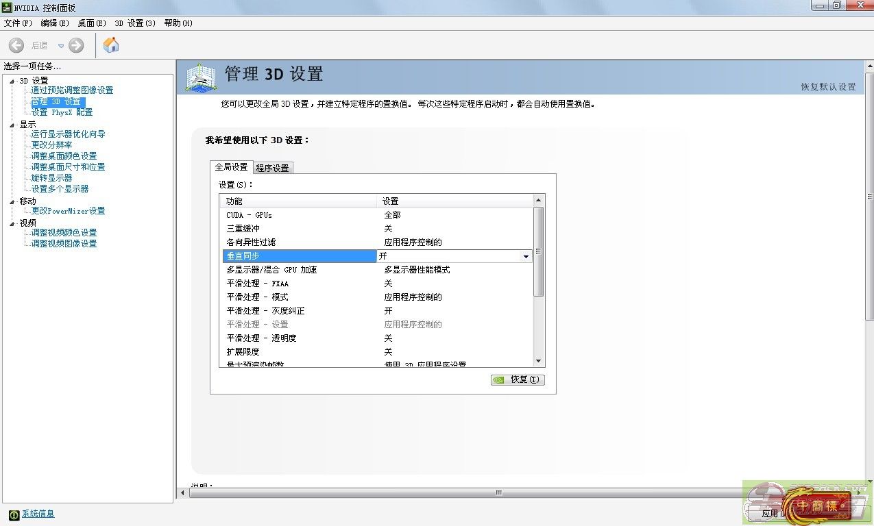 以下有一种方法可以关闭垂直同步:找到自己的NIVDIA控制面板