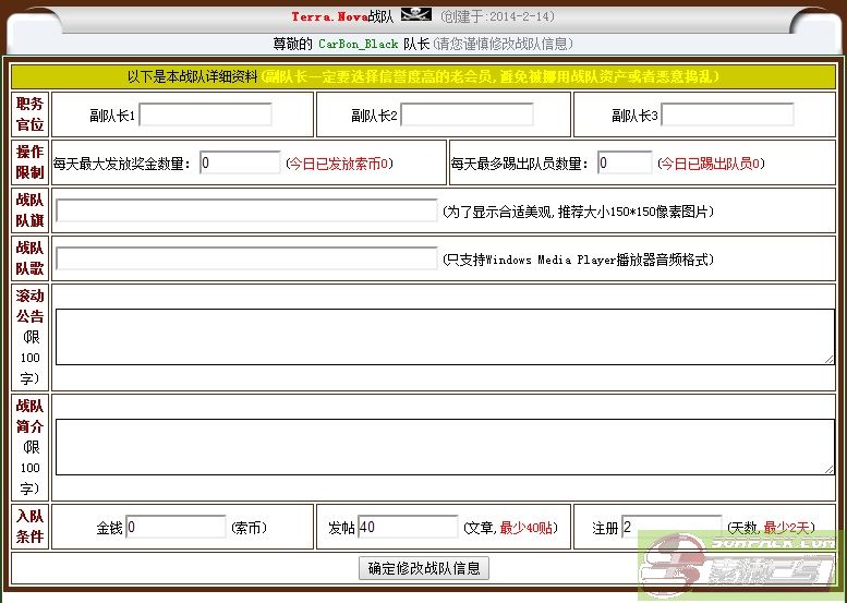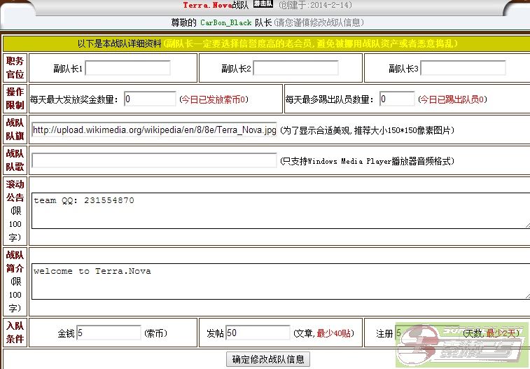 14. Into the team condition (Default value: 0 Money, 40 Post and 2 Registered days)