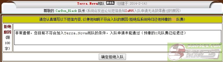 Default reason: "Unfortunately, your team does not currently meet the conditions to join Terra.Nova, into the team application fails (prepaid 0 yuan team fee has been refunded)"