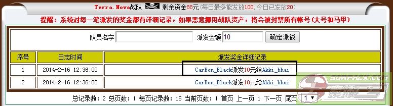 17. Funds Log (It's include team donation, bonus, into the team fee, server income, server record etc.)