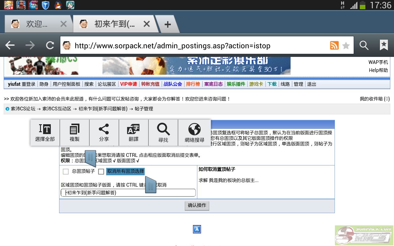 確定之後打勾,取消所有版塊固頂