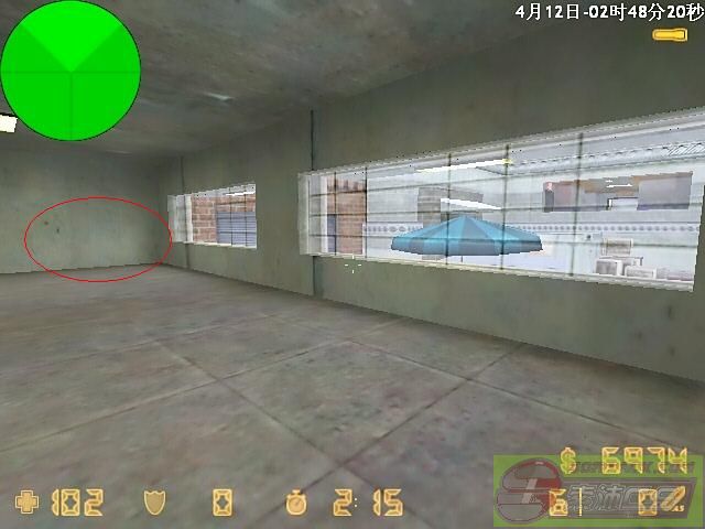 箭头所指的地方一般都有一个物品 草之类的(我的队友手贱把他打掉了) 踩上去后用烟雾弹破开玻璃(如果资金足够用闪光弹! 因为烟雾弹持续时间久 不要为了节约3000而浪费自己一条命!)一般可以躲过2~3次左右的搜查 但是要多看 有人来了马上跑 眼疾手快才能活命