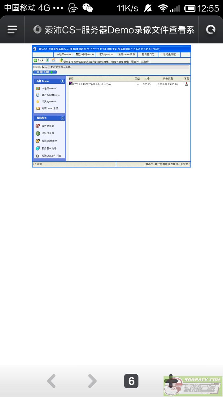 然后就可以下载了,记住你录像的时间和文件名,demo上传到索沛网站可能会有延迟,所以要等20分钟左右才会有录像出现