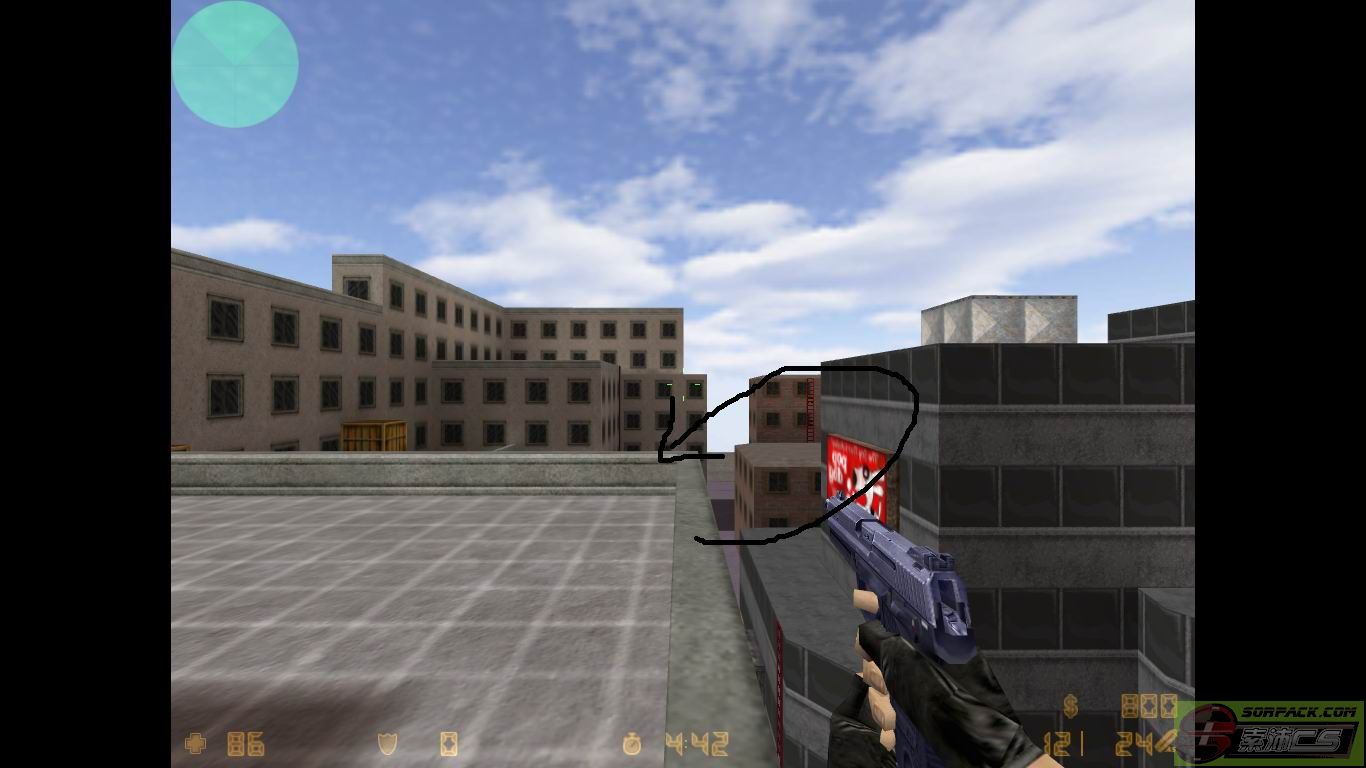 当年人们皆知的守点,也是经常去的守点,原理很简单,就是从侧面斜坡一个旋转跳跳上箱子,注意跳是跳蹲,不是小跳