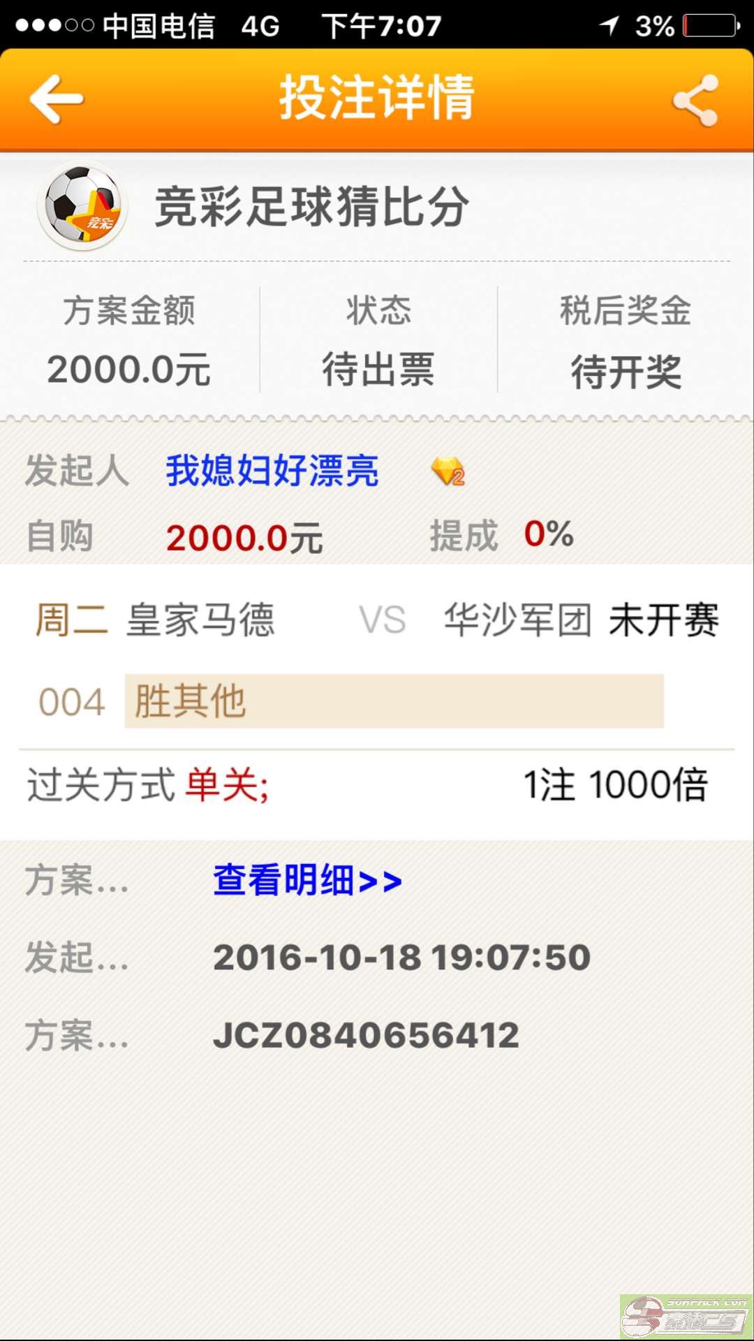这是今天的晚场我的初单 好运哥们