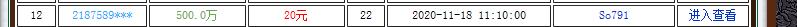 12 2187589*** 500.0万 20元 22 2020-11-18 11:10:00 So791 进入查看 哎哟这不我小狗吗 来来来 丢根骨头给你吃 别乱叫了