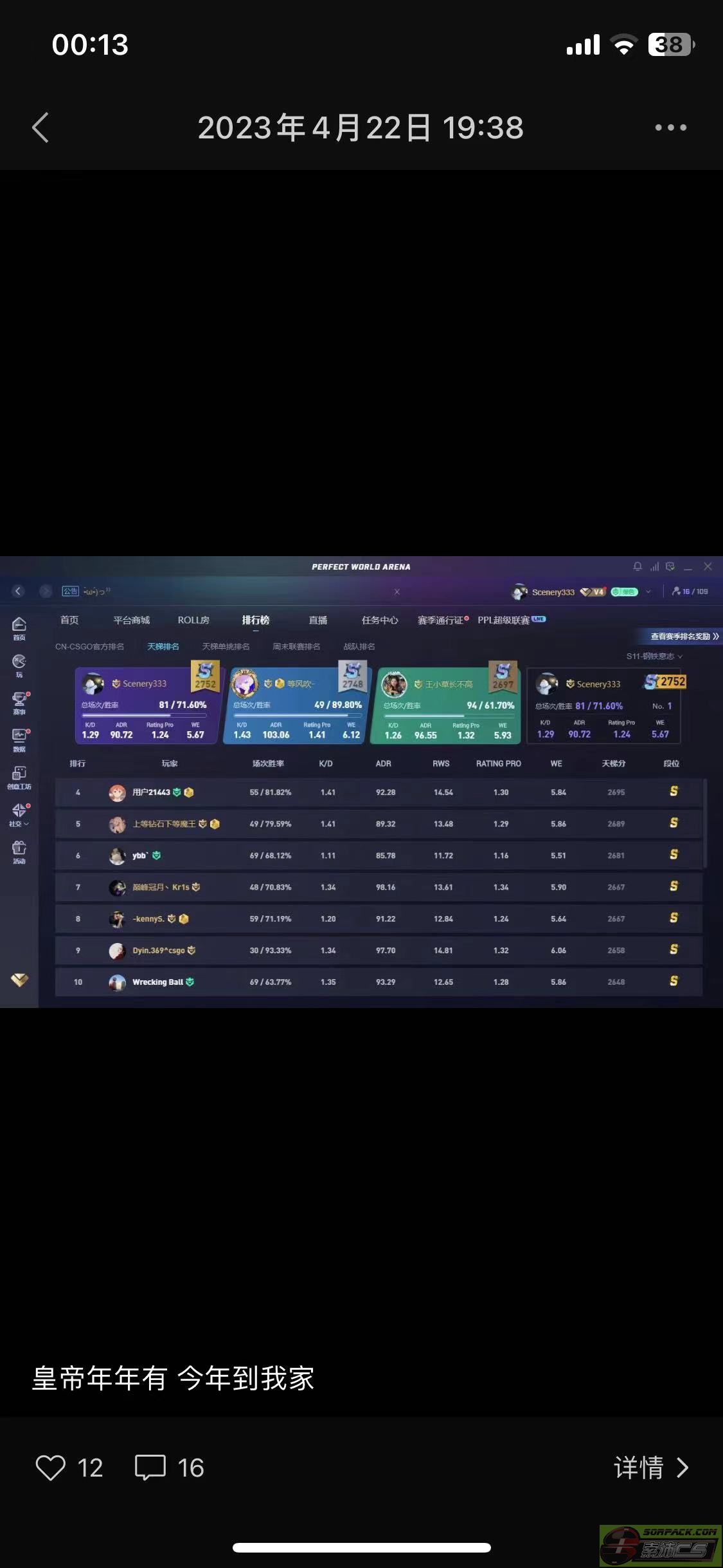 孩子 我完美第一的时候 你是不是抱着你的显示器到处说这个是挂那个是挂呢 孩子 冰雪 12 13 14年租服务器天天got5成宿干的时候 你在干嘛呢