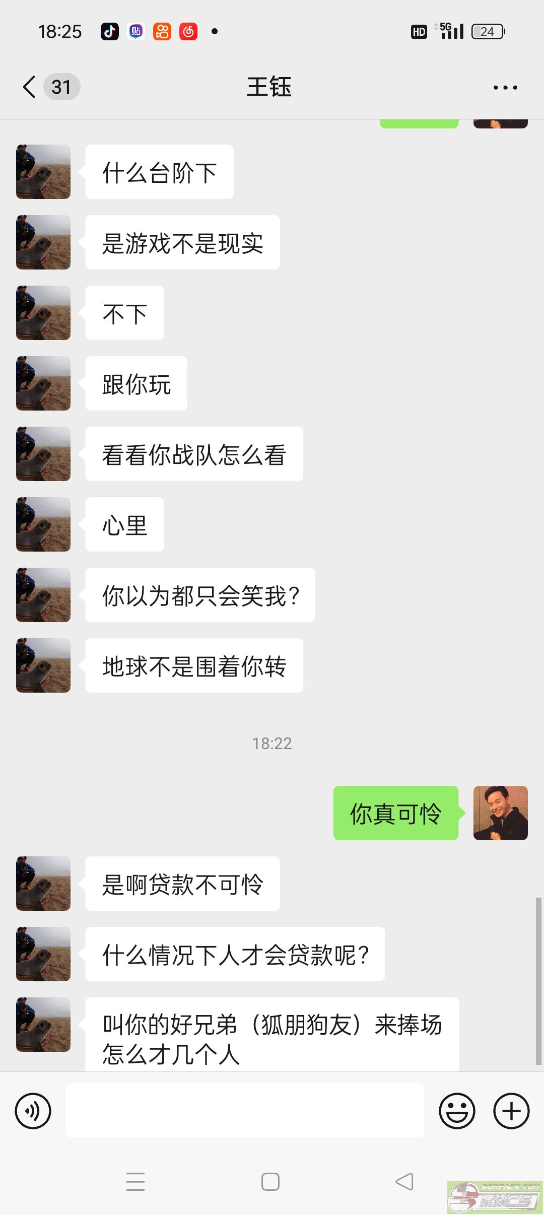 玩个游戏被人机搞破防了,就开始显摆一万的电脑和三万存款。骂我网吧穷逼崽。还非要跟我比。然后发现现实也比不过,就骂我贷款哥。笑死我辣。