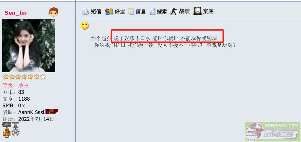 我玩个游戏还得听你指挥? 没钱没人不能玩游戏吗哥们? 你一个月前三四个人刷分挨打的时候我们还发个帖骂你几句?