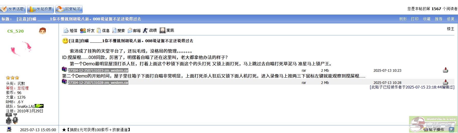 投诉区不是你想封谁就封谁的 要封他你得拿出来充足的证据呀