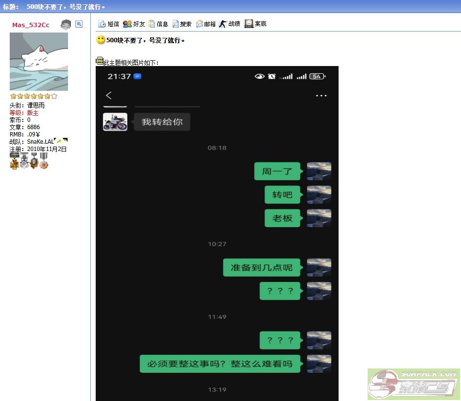 童啊,真不至于,不就500块钱么,你舔你大哥的卡和卖你大哥的票,这两个进你口袋的钱都不止500了吧, 你至于因为这500块钱,背刺你好大哥吗? 你 不就是嫌你好大哥说了你的实话,你对此怀恨在心呗, 你利用超版报复呗。
