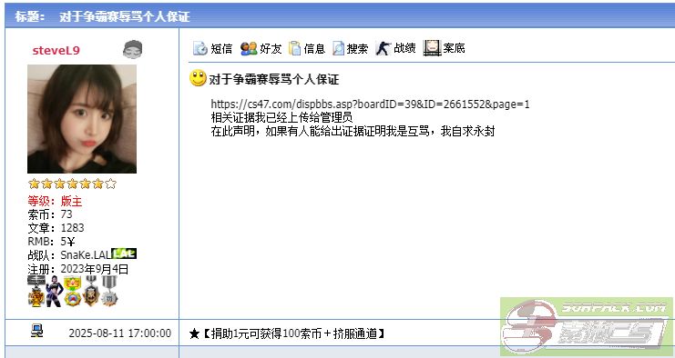 >> 在服务器或论坛中受到不公平对待,请进入此区投诉