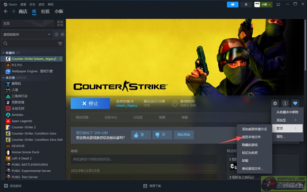 点击浏览本地文件打开安装CS1.6的目录