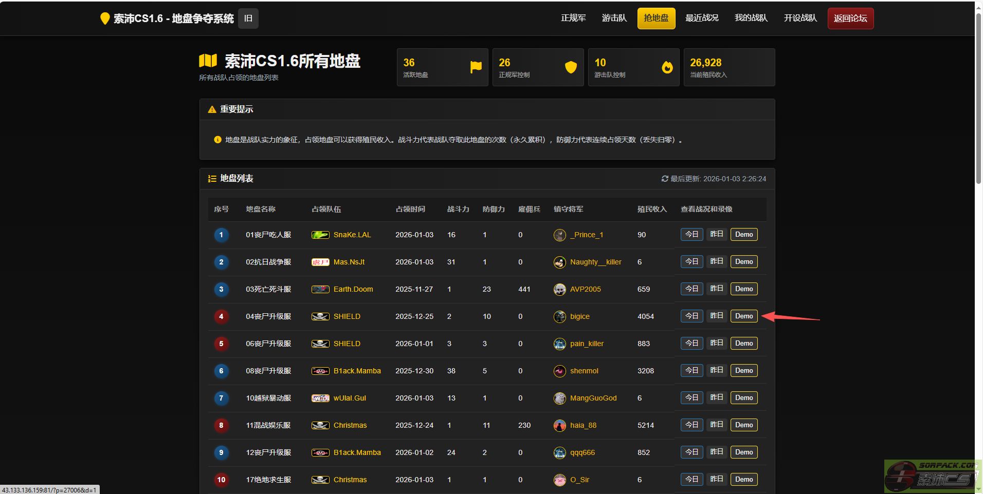 然后点击战队公会,点击抢地盘 地盘后面有个Demo