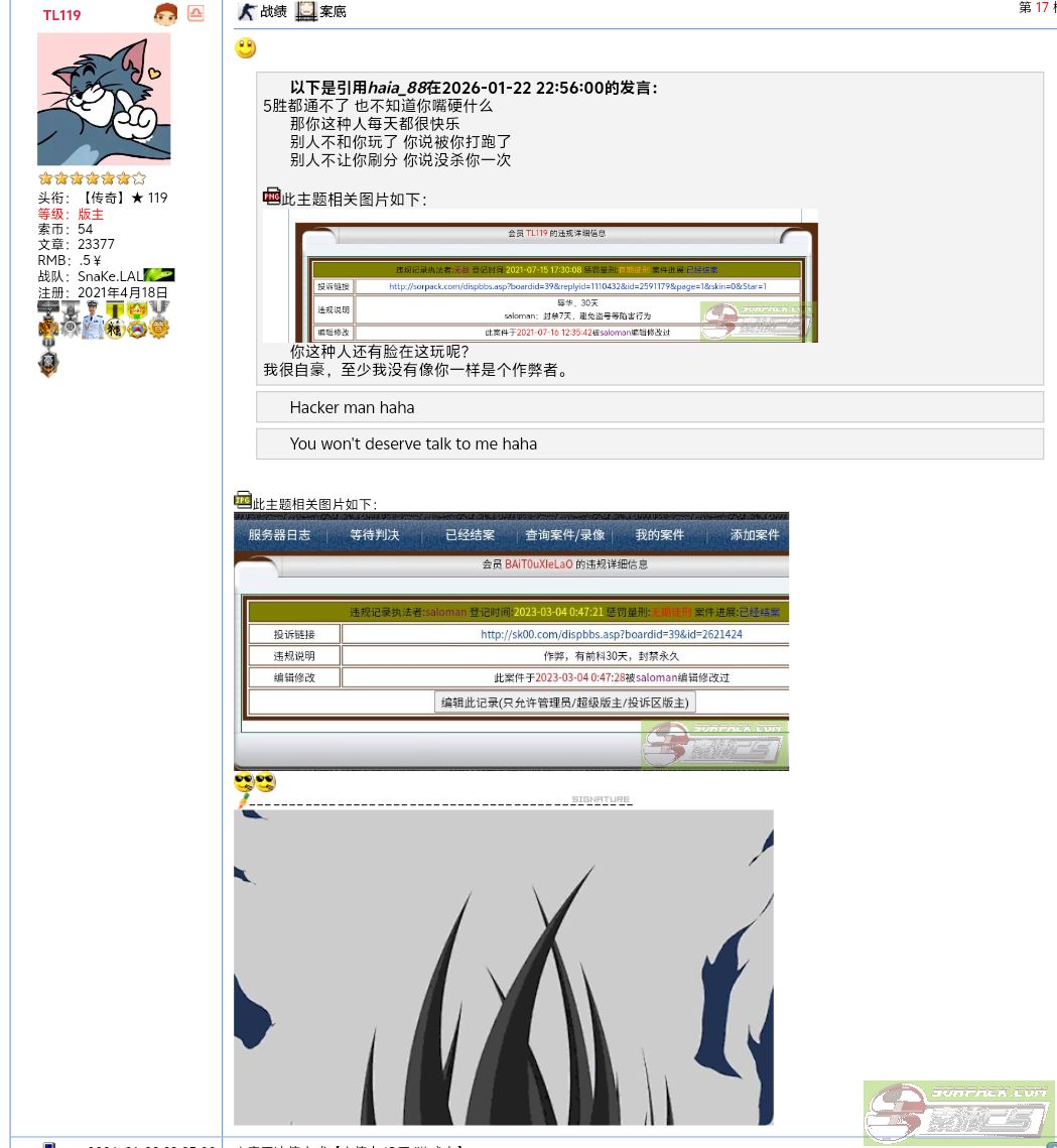 案底全是辱骂,这种SP封了也罢