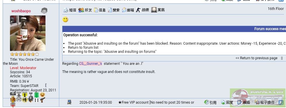 >> 在服务器或论坛中受到不公平对待,请进入此区投诉