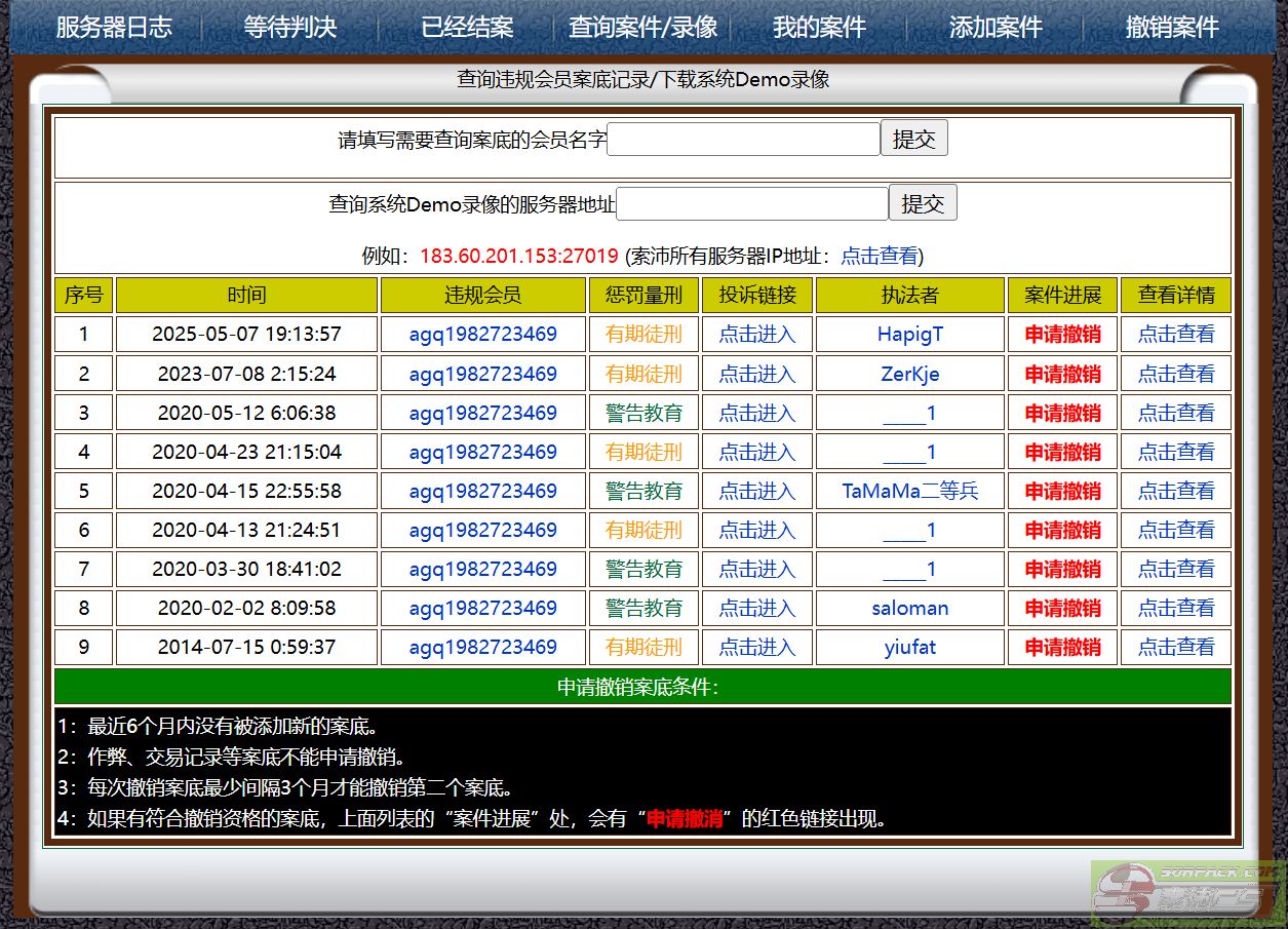 案底/Demo查询