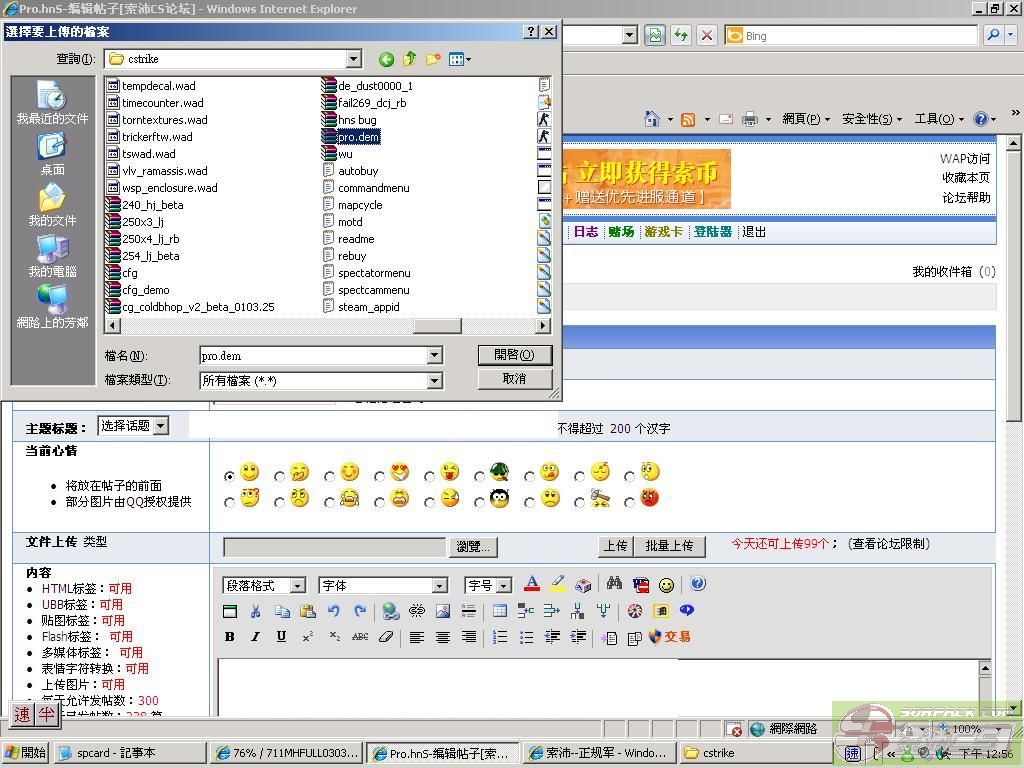 之後去cstrike 找回pro.dem  (中文版cs請去cstrike_schinese或cstrike_tchinese)