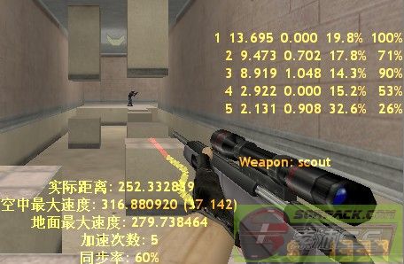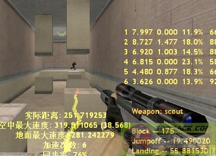 明显用轻狙跳的,不用轻狙LJ地速能上280我还真是第一次见