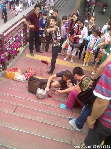 七 旬 老 奶 奶 靠 卖自 己 做 的 小 首 饰(护身符) 摆 摊 为生 。从 执 法车上 下 来了 几 个 年 轻 人 ,朝 天 桥 上摆 地 摊 卖 小首 饰 的 老 奶 奶 走 来 连 扇 老 奶 奶 几 个 耳 光 连 推 倒 在 地,并 且 扬 言 见 一次 打 一 次。 街 上 那 麽 多 地 摊 你 们 都 不 收! 一 个 老 奶 奶!你 们 就 穷 追 不 舍?导 致 奶 奶摔 下 天 桥 头 破 血 流 你 们 都 走! 有 沒 有 良 心 啊!你 们 到 底 都 是 什 麽 人 啊! 爲 什 麽 只 欺 負 老 人!无 良 心 的 城 管。有 良 知 的 帮 忙 转 一 下,如 果 你 看 到 此 图 愤 怒 了,请 团 结 起 来,替 老 奶 奶 夺 回 公 道!!!